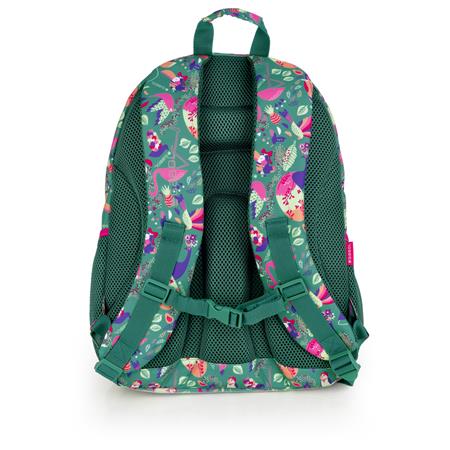 Hátizsák, iskolatáska, cipzáras, GABOL "Vida", zöld, trópusi mintás
